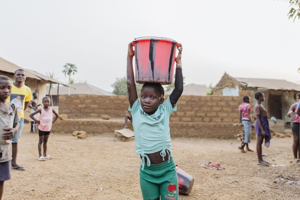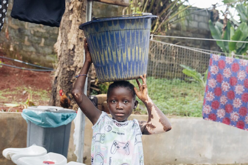 Even everyday tasks were tough for Musu. Washing clothes means scrubbing them hard against a custom-made wooden board. Fetching water involves pumping a lever at the borehole and carrying the container home, often on the head.